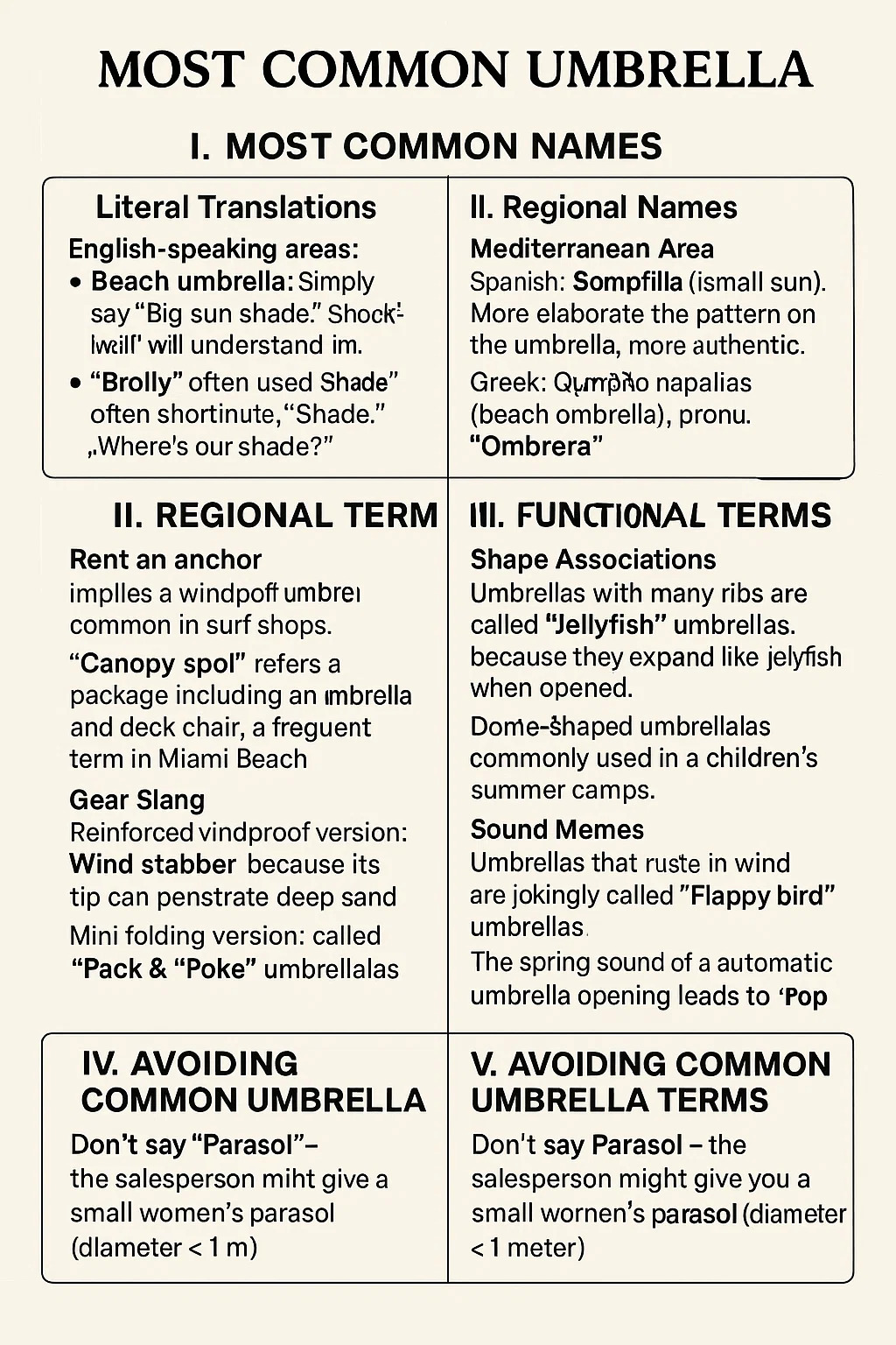 Communia nomina hic sunt litus umbrellas in diversis adiunctis: